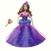 Teresa doll is featured here as Princess Alexa from "Barbie and The Diamond Castle" who sings two songs from the movie and wears a mesmerizing glittery gown that magically transforms with the flip of a switch. Her necklace lights up when she sings. Pair her with the Princess Liana doll, sold separately, to hear beautiful duets. Requires 3 "button-cell" batteries, included. Doll measures 11.5" tall.
